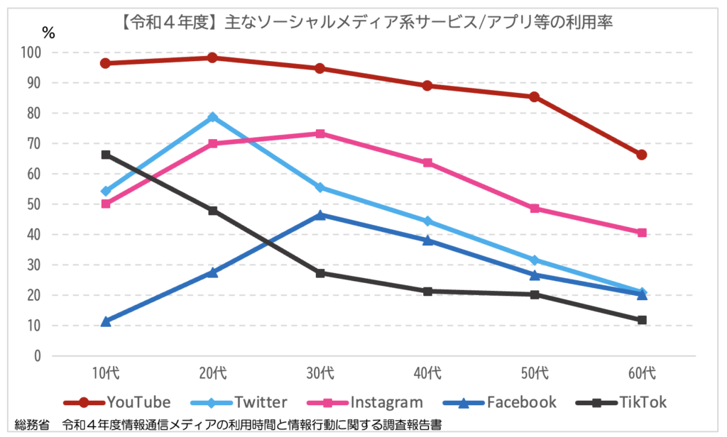 総務省が実施している調査も見てみましょう。YouTubeが項目に入っていることで、見える景色はより鮮明になってきます。