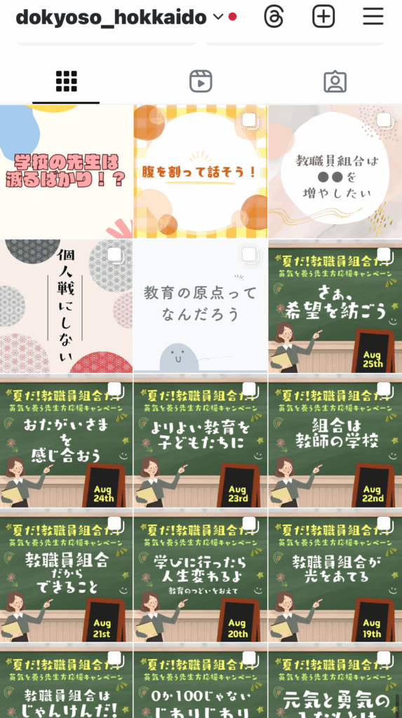 私たちが大切にしている教育条理のなかで、最も具体的でシンプルな部分をコンパクトに発信をすると、「あれ?なんかいいこと言ってるアカウントがある。教職員組合ってあるんだ」と気付いてもらえるようなアカウントに成長するのでしょう。