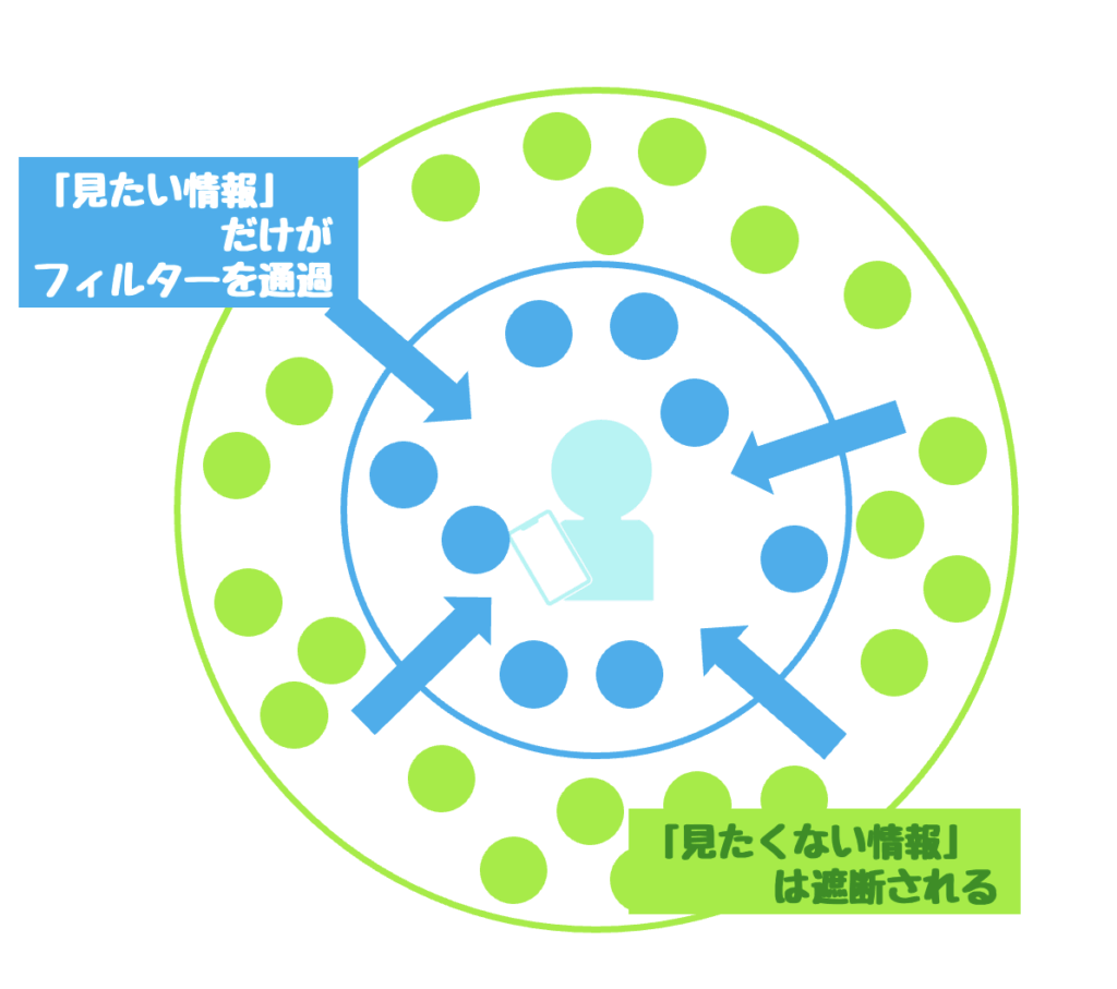SNSを見る側として使う際に意識しておかなければならないメディアリテラシーがあります。それはフィルターバブルです。