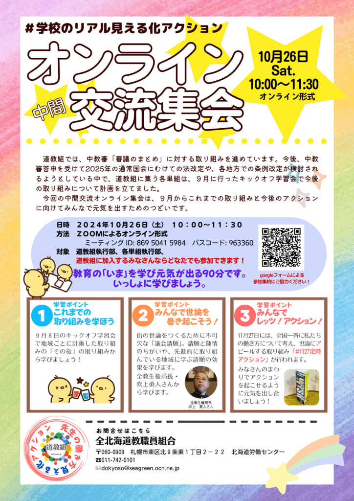 10月26日に道教組で「学校のリアル見える化アクション」についての中間交流集会を開催。